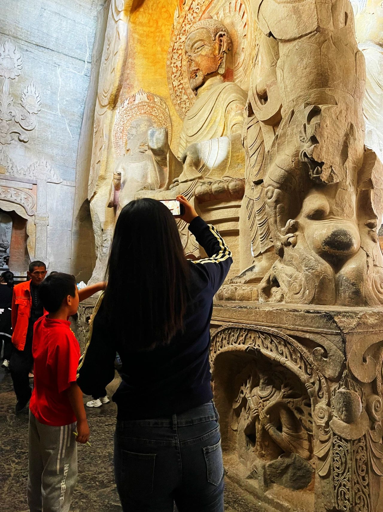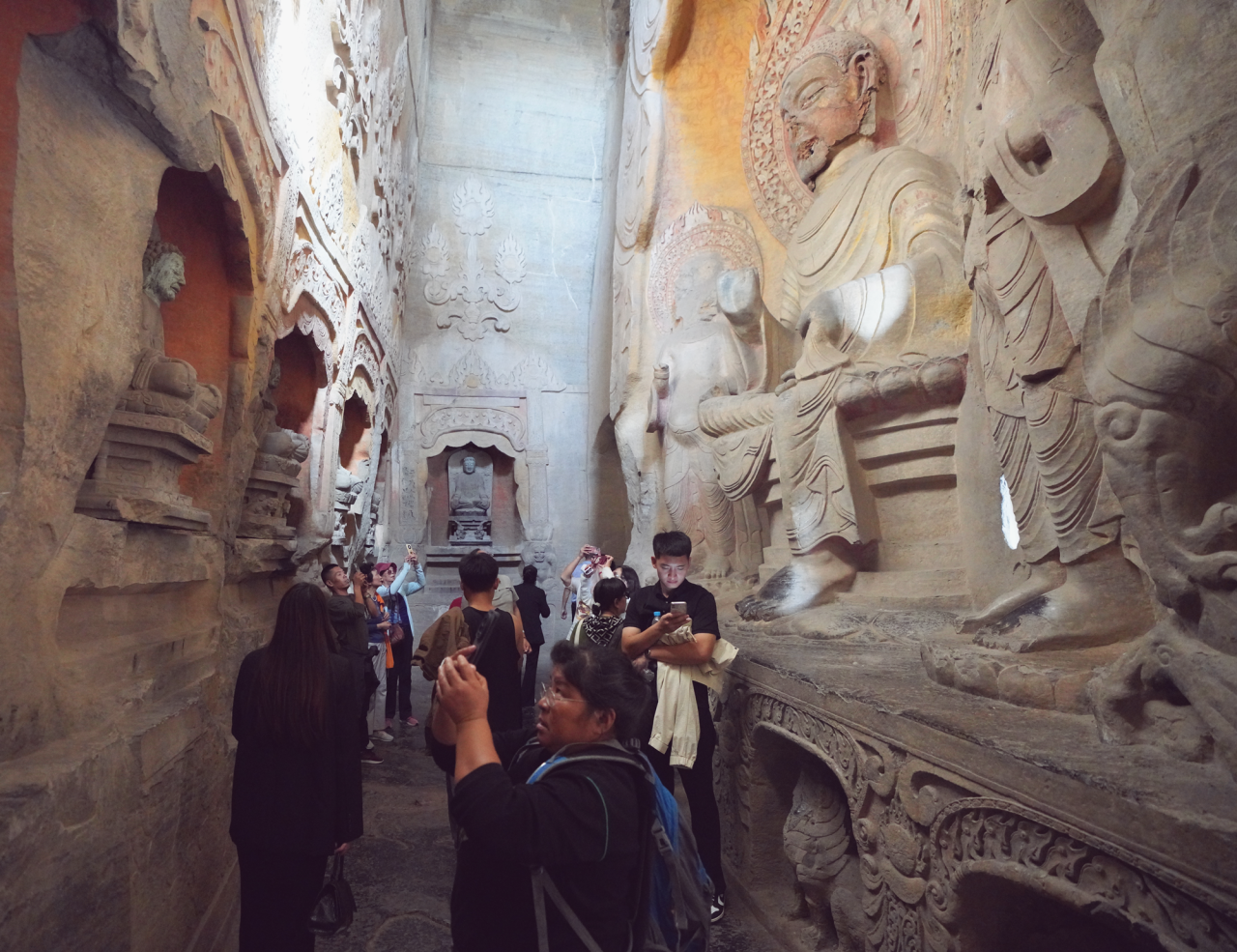 在石窟区,游客们情不自禁纷纷驻足,惊叹于那些历经千年岁月磨洗,仍灵动传神的石刻造像。每一尊佛像,每一幅壁画,每一通经碑,都仿佛在诉说着古代工匠的智慧与虔诚,让人们在欣赏艺术的同时,也深刻感受历史的百代风华。