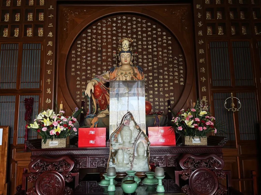 殿内供奉有观世音菩萨。观世音菩萨,又名观自在菩萨,是佛教四大菩萨之一。观世音菩萨是慈悲和智慧的象征,以观世音菩萨为主导的大慈大悲精神,被奉为大乘佛教的根本。在佛教信仰中,观世音菩萨闻声救苦,具有无量的智慧和神通。人们认为通过虔诚的信仰和祈祷,能够得到观世音菩萨的庇佑和加持,获得内心的平静与安宁。