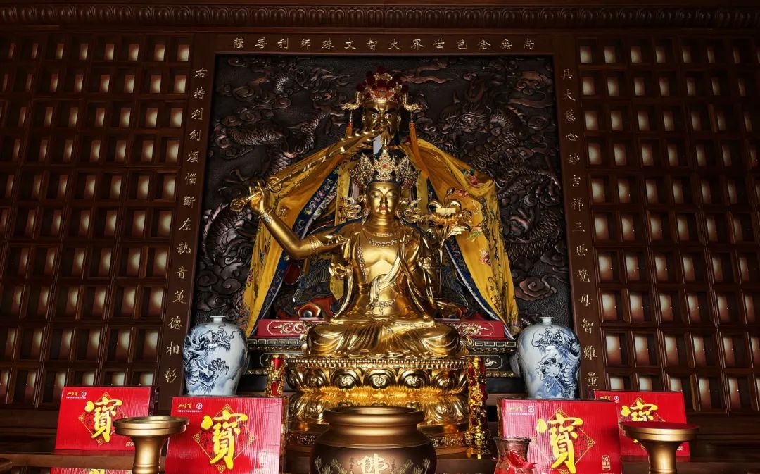 殿内供奉着文殊菩萨和五爷。文殊菩萨为佛教中的智慧象征,具有无上的才智和辩才。人们向其祈求增长智慧、学业进步、事业顺利等,对广大信徒的影响深远且持久。五爷又称广济龙王菩萨,传说为东海龙王敖广第五子,为文殊菩萨护法,被广大信众视为有求必应之象征。同时,还象征着财富和福气,故又被称为“龙五爷财神”。