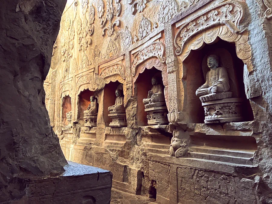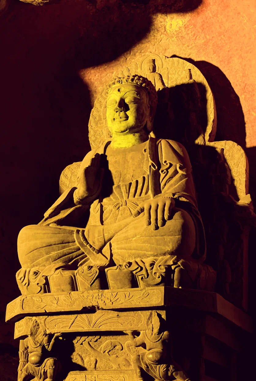 响堂山石窟,一座座始凿于东魏、主体完成于北齐的石窟,宛如一座座文化殿堂和艺术丰碑,静静伫立在华夏大地上。窟内的佛像雕刻精美绝伦,每一尊都有着独特的风采神韵,承载着那个时代人们对宗教的虔诚和对美好生活的向往。登临响堂,你会知道:1961年,响堂山石窟即被国务院公布确定为第一批国家重点文物保护单位,是中国三大皇家石窟之一,也是中国石窟艺术史上著名的“北齐样式”体现所在,其造像雕刻艺术承前启后,是中国石窟艺术发展史上从北魏云冈石窟到唐代龙门石窟过渡阶段的一个重要标志,也是研究中国佛教、建筑、雕刻、绘画及书法艺术的重要宝库之一。