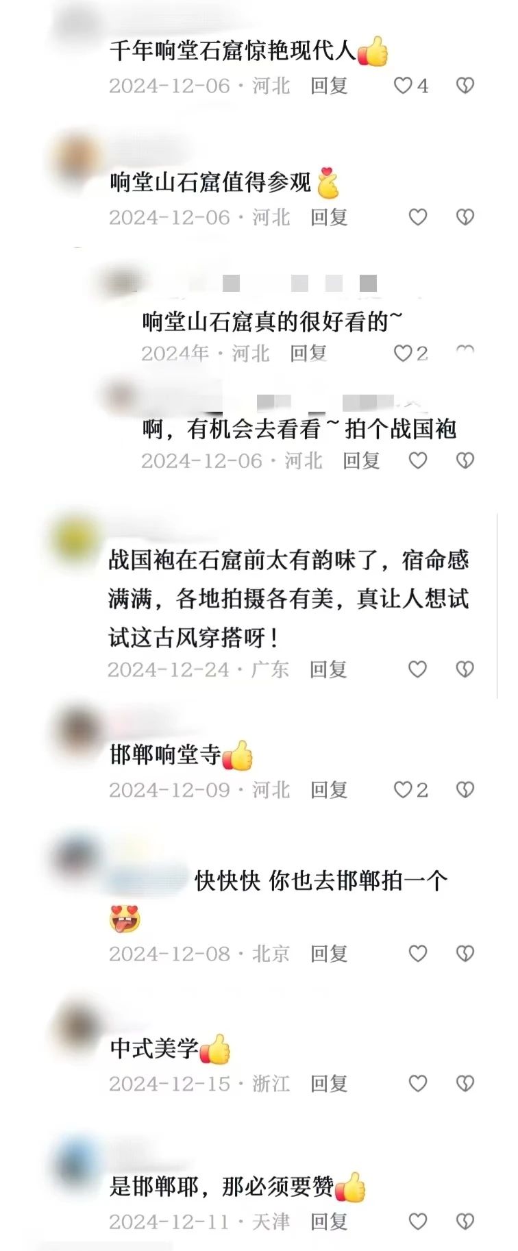 网友们纷纷在评论区留言晒图,表达对响堂山、对邯郸这座历史名城的向往与热爱。