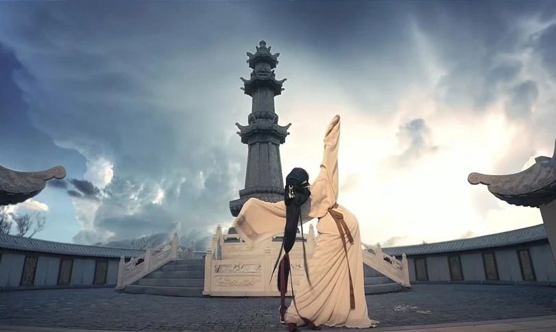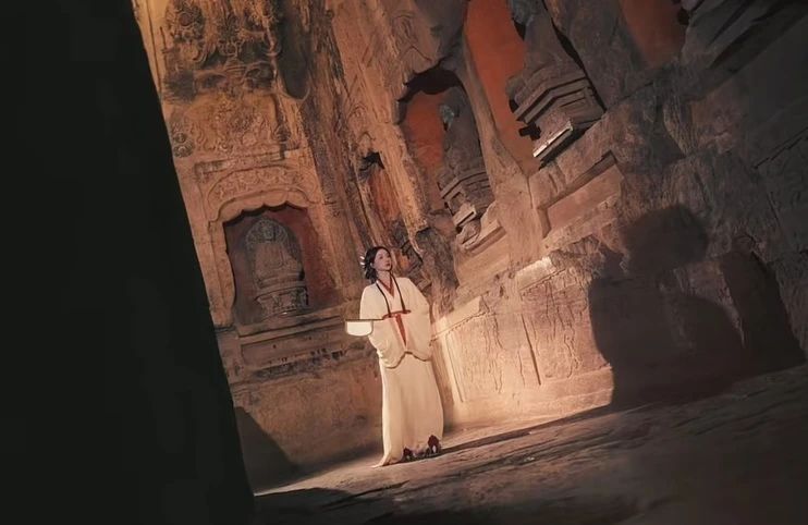 视频中,王一一身穿古朴厚重的战国袍,与身后的千年古刹、庄严石窟相互映衬,阳光洒下,袍角飞扬,刹那间,时光仿佛交错,响堂山深厚的文化底蕴于此尽显。