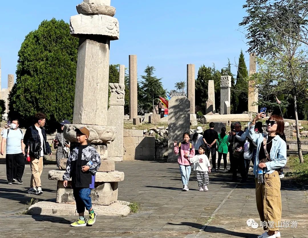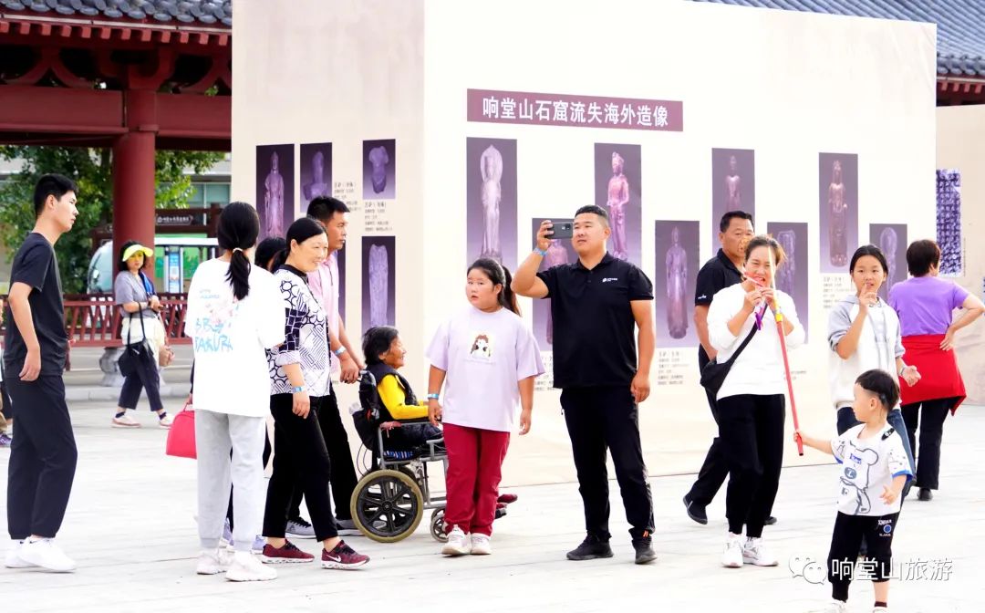 来自天南海北的游客,三五成群,拍照打卡,在响堂山留下美好的瞬间。