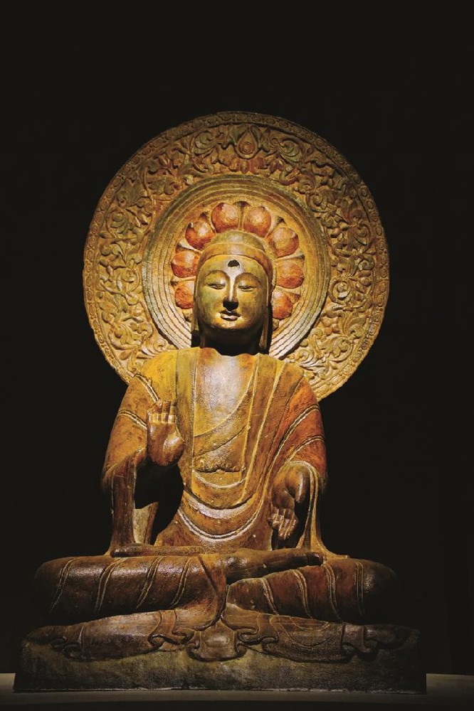 图右:佛坐像(3D打印);真品洞窟原位:北响堂石窟北洞侧壁列龛内,于1924年以前流失,现收藏于维多利亚和阿尔伯特博物馆。