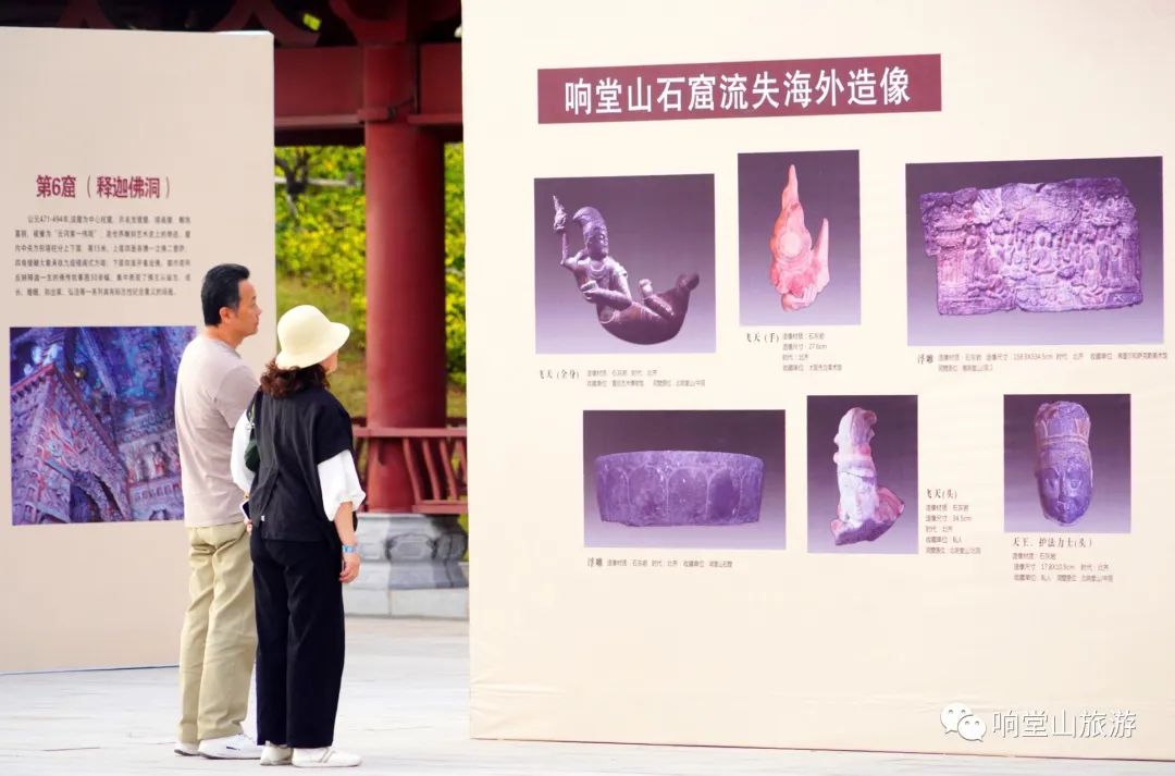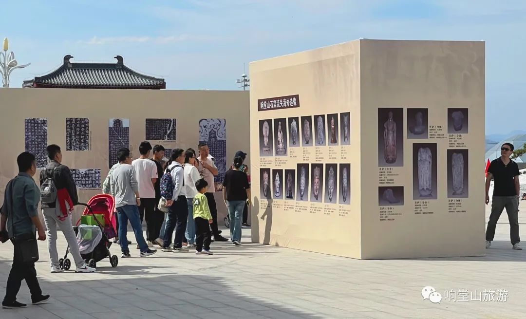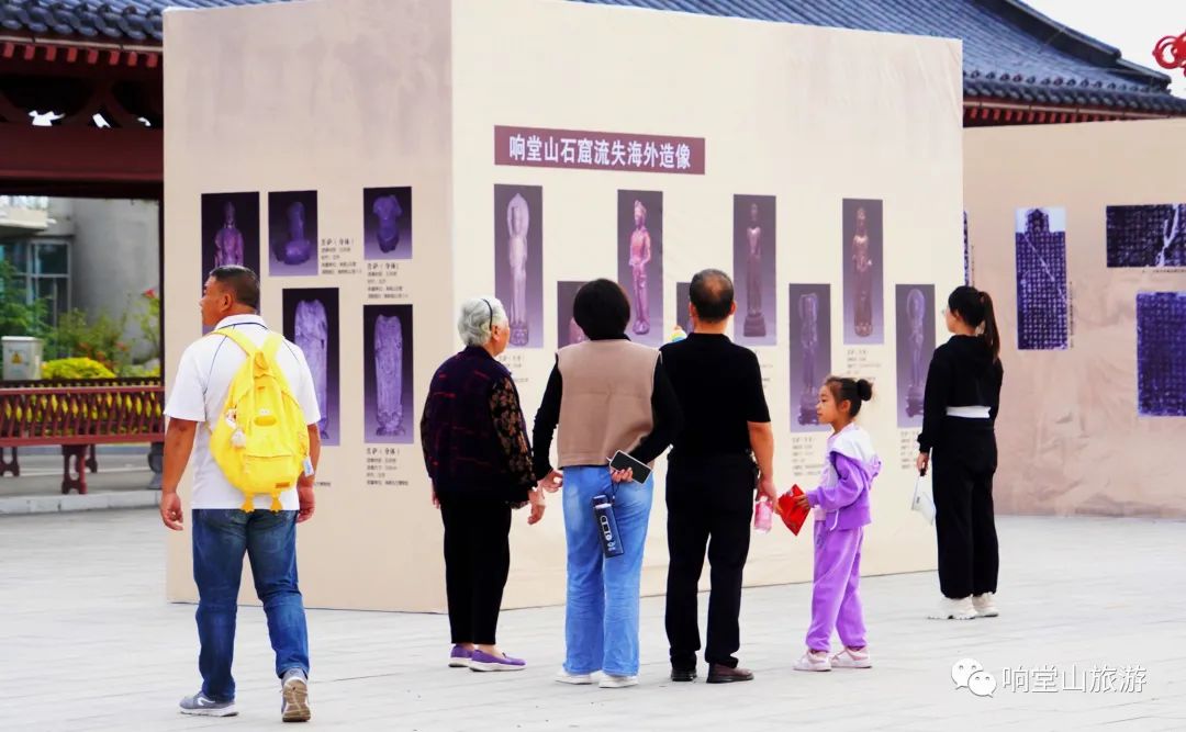 景区金鼓广场布列的“云冈、龙门、响堂山石窟联展”吸引众多的游客驻足欣赏,详细了解了三大石窟的历史流变,风格传承,内在关联,明晰了多元文化的融合汇聚,才得以形成中华文脉的永续传承。
