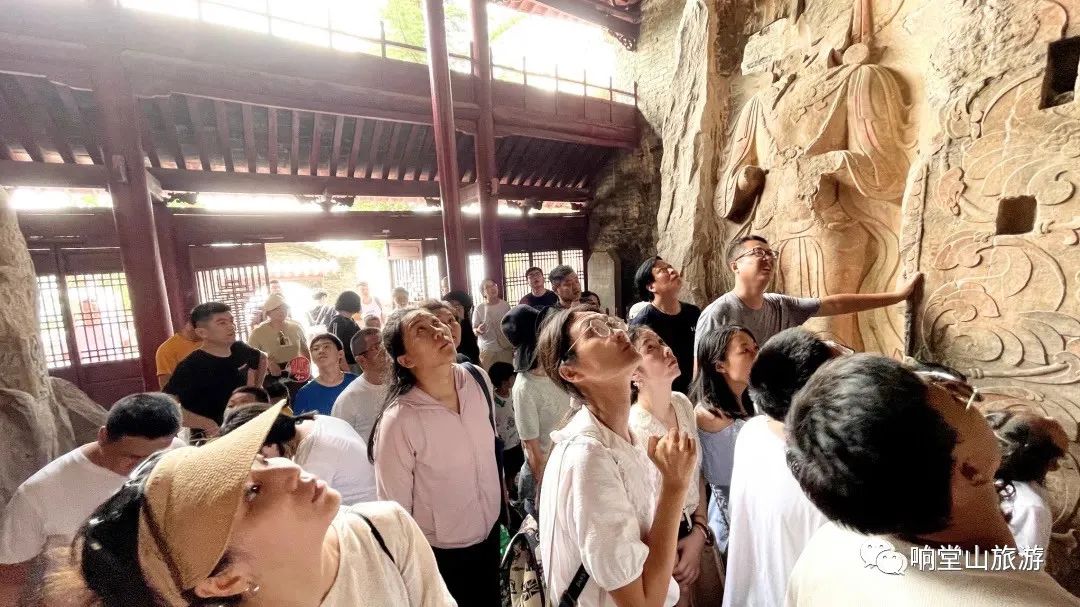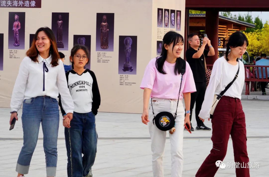 来自天南海北的游客,三五成群,拍照打卡,在响堂山留下美好的瞬间。